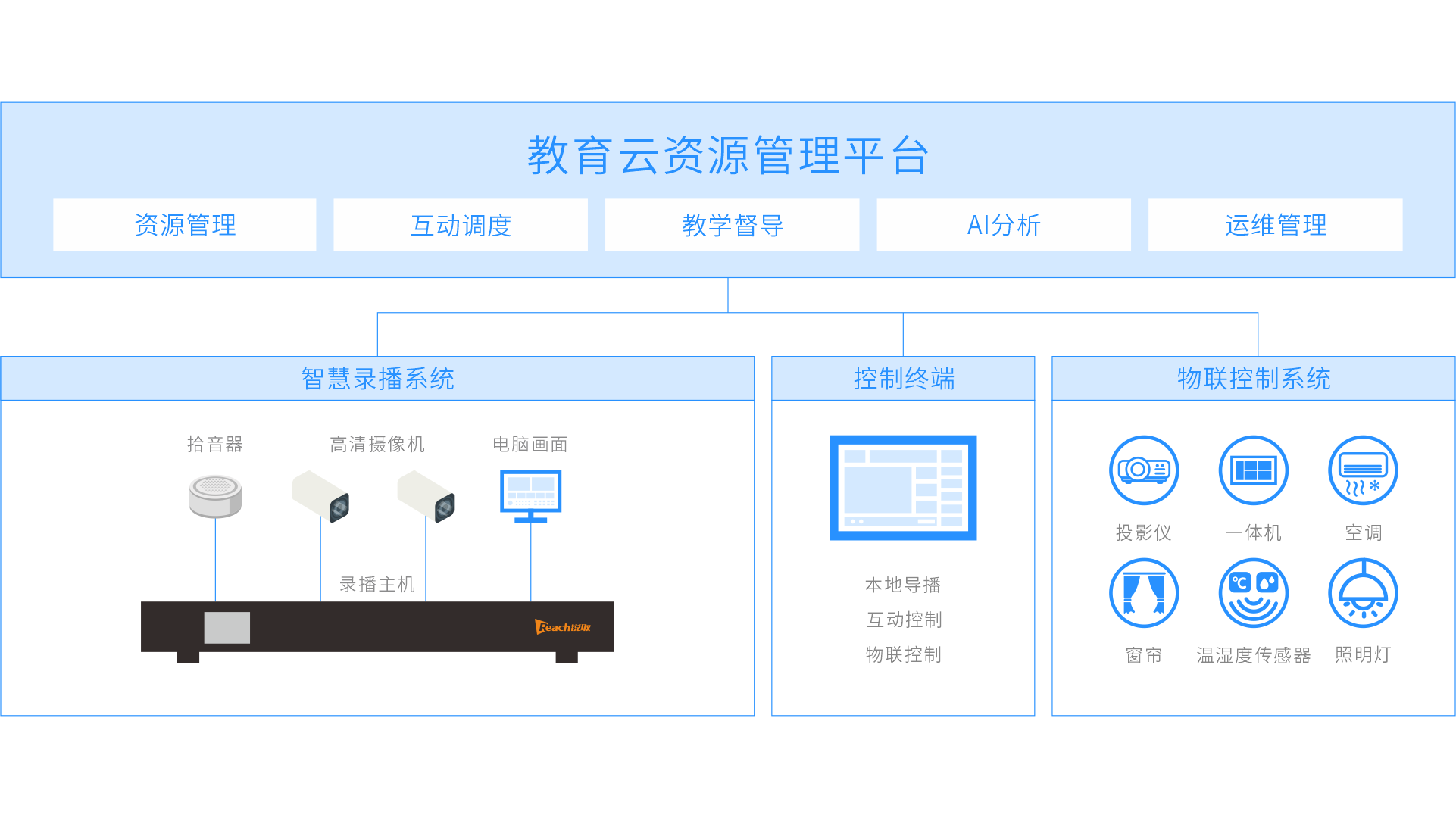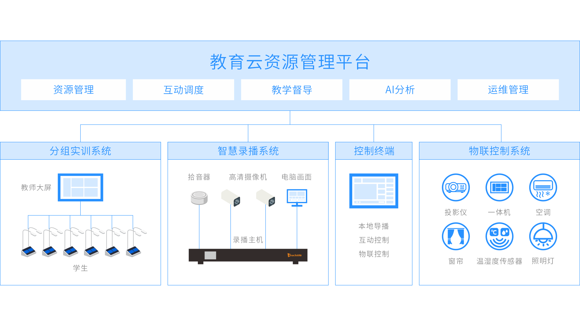 教學資源自動上傳集中管理,設備統一管理,隨時開展在線巡課督導評價等活動